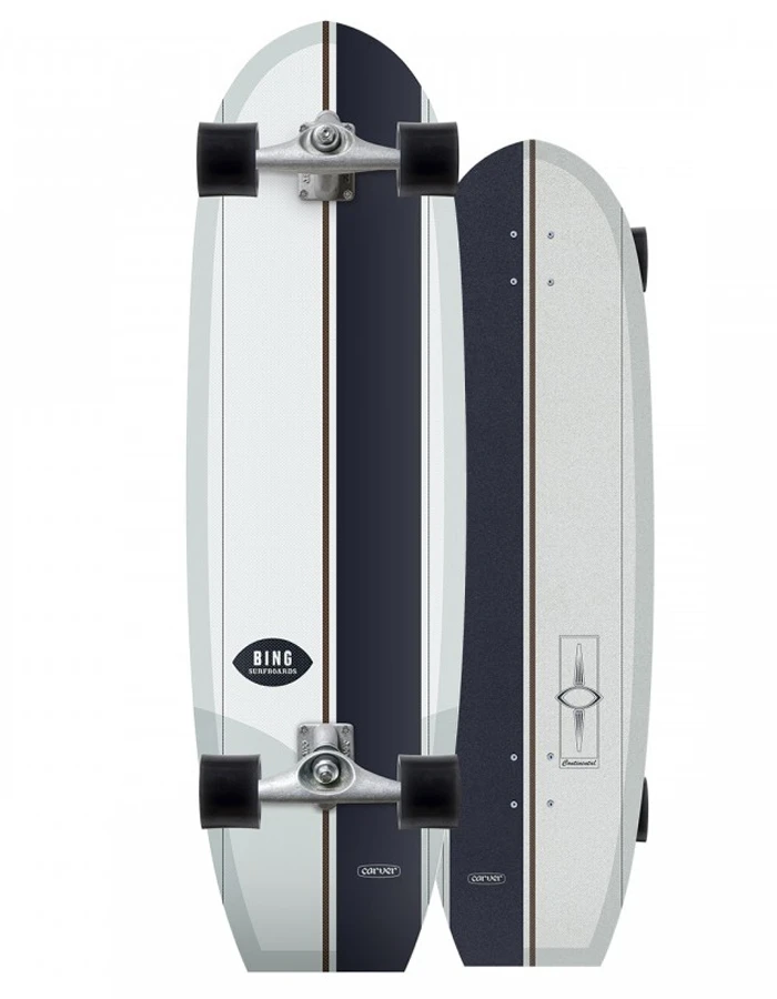 A true classic surfskate, The 37” Bing Continental is the longest board in Carver’s lineup, with a super wide template for easy and stable cruising, cross stepping, and nose riding. Experience the feeling of longboard surfing on pavement! This timeless design is a must have for any Carver quiver. Inspired by the glide and control of its surfboard counterpart, the Continental’s 21.25″ wheelbase is long enough to flow smoothly for cross stepping, but with Carver’s renowned CX and C7 truck systems, remain very maneuverable. Complete with top graphics and Sugarcoat grip for that ‘waxed longboard’ look, this exclusive collaboration lets you embrace the freedom of the streets while capturing the spirit of the ocean.