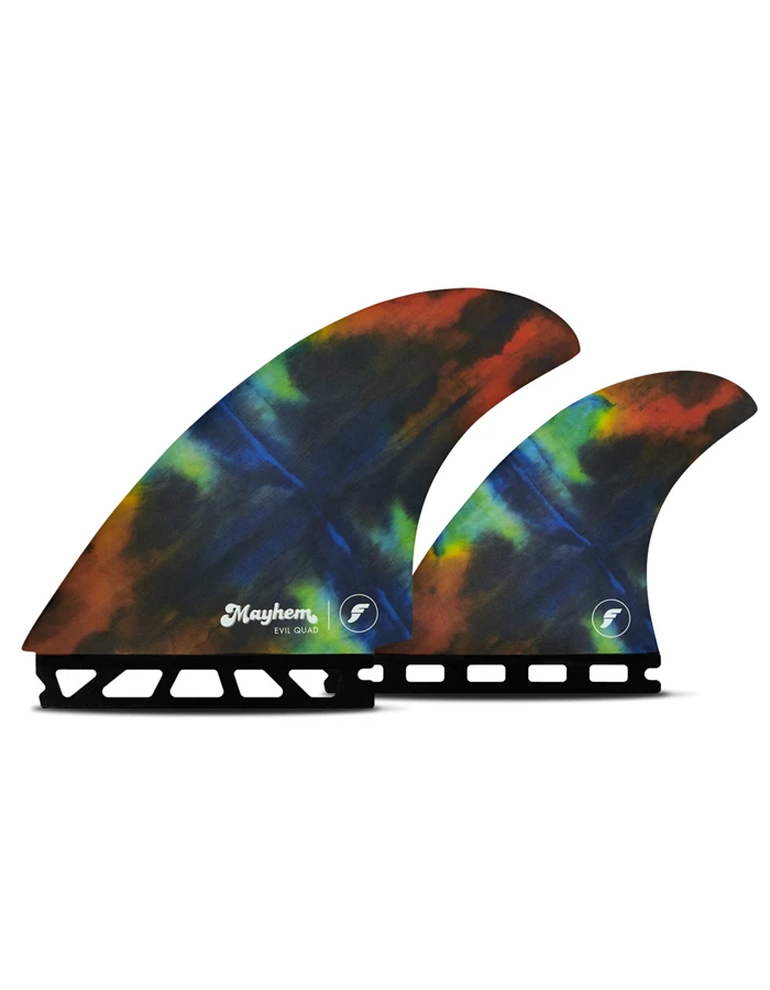 Over the last year or so, I revisited this concept and have been personally having a blast, working with Futures to get it tested and developed. Using the new “medium sized” Evil Twin template up front and pairing with two 80/20 foiled, downsized rear quads, we felt we nailed it. After playing with varying cants, flexes, and visuals, we are proud to announce and release the all NEW EVIL TWIN+2…or should we say EVIL QUAD.
