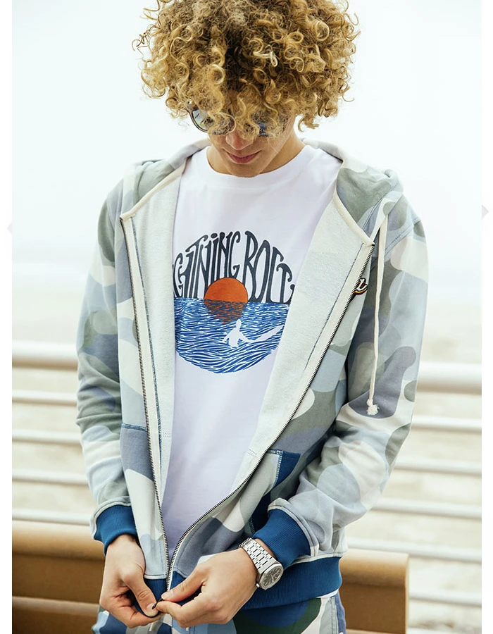 Plain cotton t-shirt with front screen print. Finished with ribbed collar.