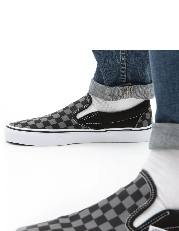 VANS CHECKERBOARD CLASSIC SLIP-ON SHOES BLACK PEWTER